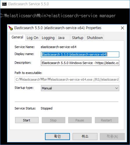 초기 서비스 등록 후 자동시작이 되어 있지 않기 때문에, 수동으로 시작을 해줘야 함.